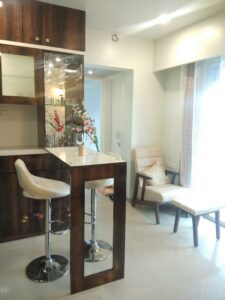 Refrigerator, kitchen with granite countertop and sink, 24-hour water supply, water purifier, water heater, air-conditioned bedroom, extra mattress, closet, double bed, blanket, false ceiling with lots of lighting that works, couch, dining area, built-in drinks corner, and detached toilet bathroom.